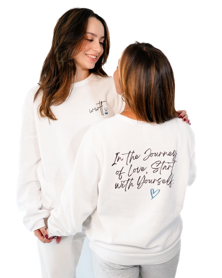 This "In the Journey of Love" Crew Neck Oversized Sweatshirt is a cozy and stylish addition to your wardrobe.